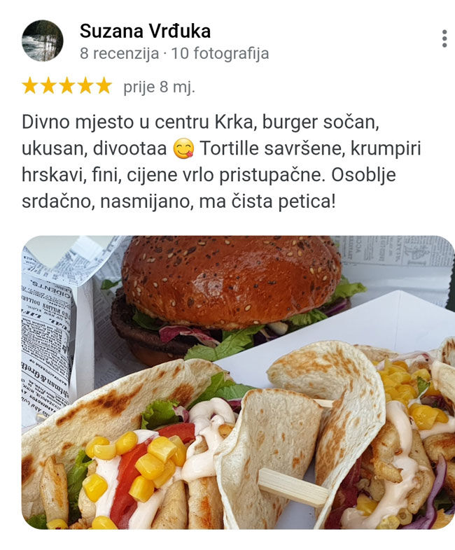 Svakodnevno radimo na usvajanju i usavršavanju novih tehnika izrade burgera, ali osnova uvijek ostaje ista: kvalitetno meso, autohtoni sastojci s otoka Krka i naravno nezaobilazni umaci koji daju burgerima prepoznatljiv karakter i prepoznatljiv okus.